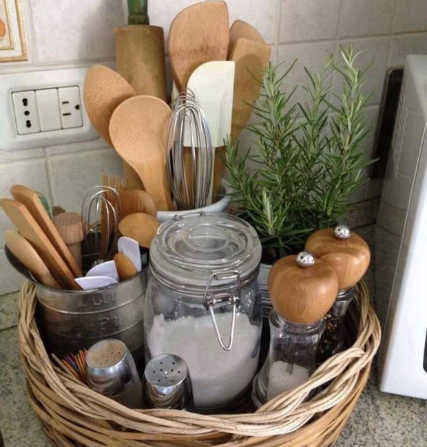 Para quem está com a grana curta nesse início de ano e gosta de mudar a arrumação da cozinha ( e da casa toda, assim como eu) , ai vão três dicas basiquinhas ... vamos revirar esses armários e dar novo uso aos objetos que já temos!! Pega aquela cestinha, aquele bule ou jarra bonitinha e mãos na massa!